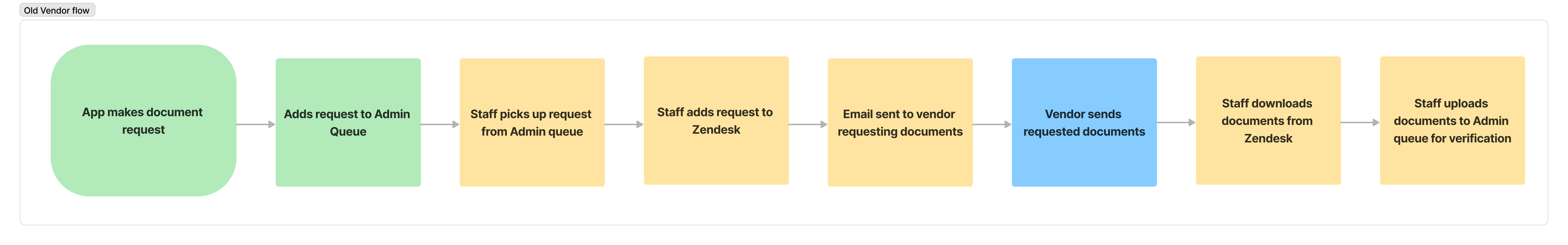 Document Request: Optional scenerio showing verified, and a document with an issue including a note from vendor.